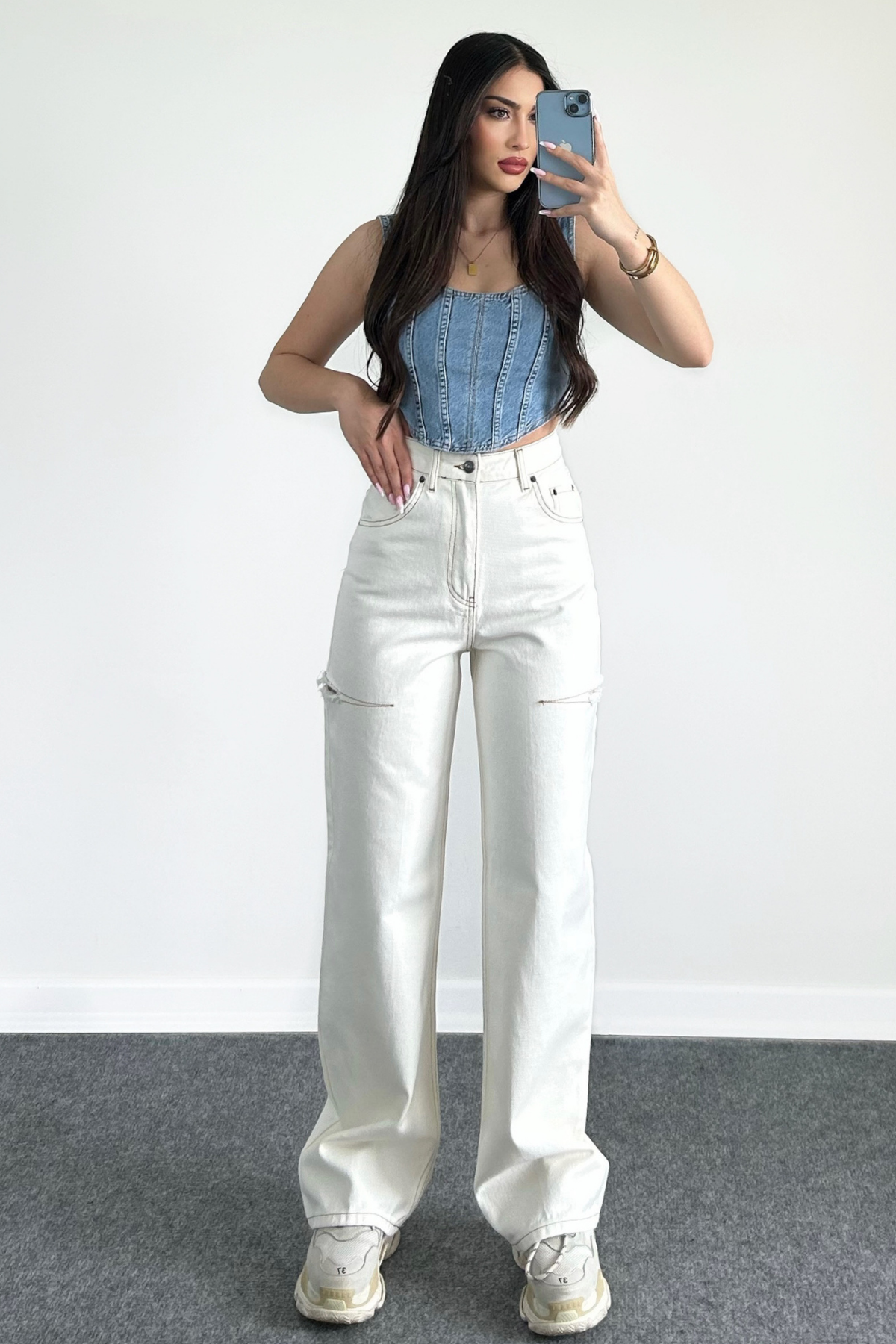 EKRU YIRTIK DETAY JEAN