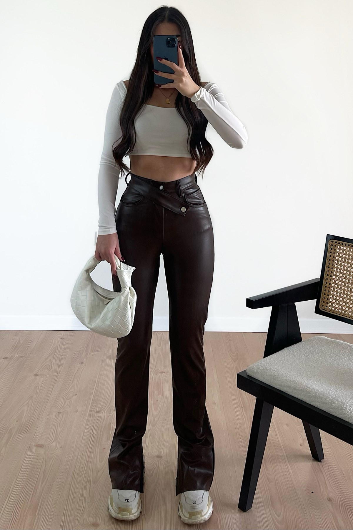 KEMER DETAYLI YIRTMAÇLI ACI KAHVE DERİ PANTOLON