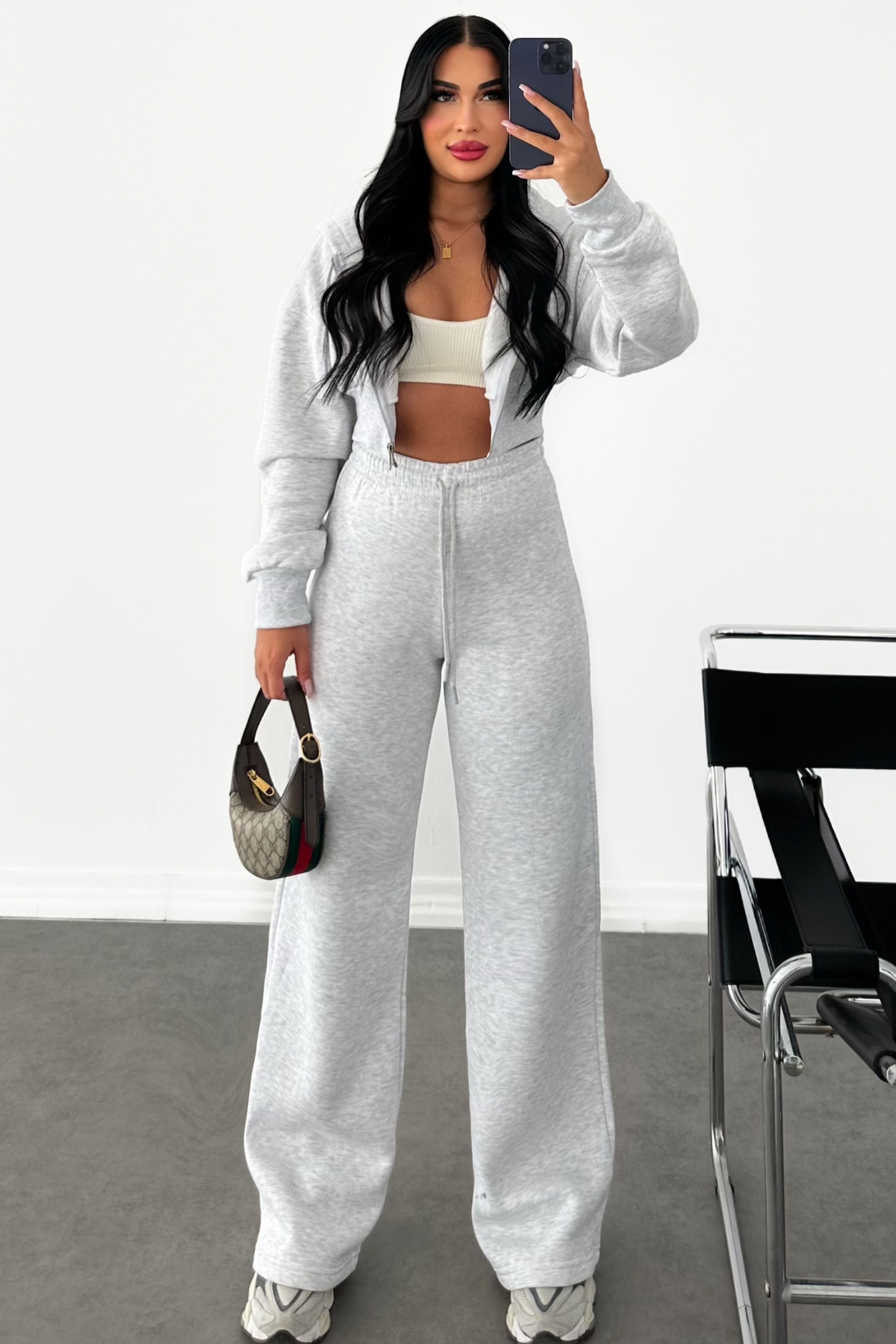 PREMİUM GRİ ŞARDONLU BOL PAÇA EŞOFMAN TAKIMI