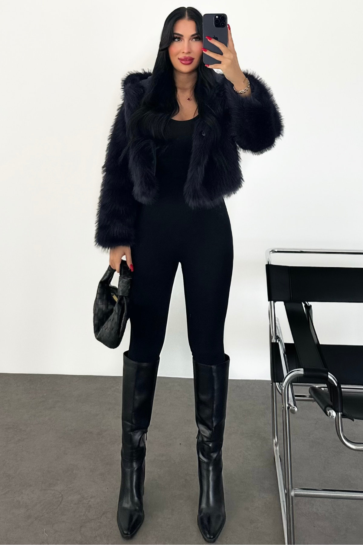PREMİUM KAPŞONLU LACİVERT KÜRK