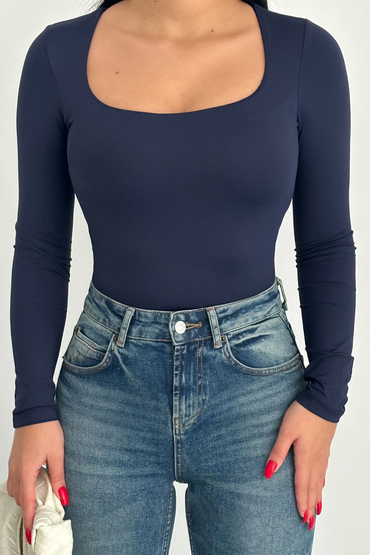 PREMİUM LACİVERT RENK KARE YAKA BLUZ