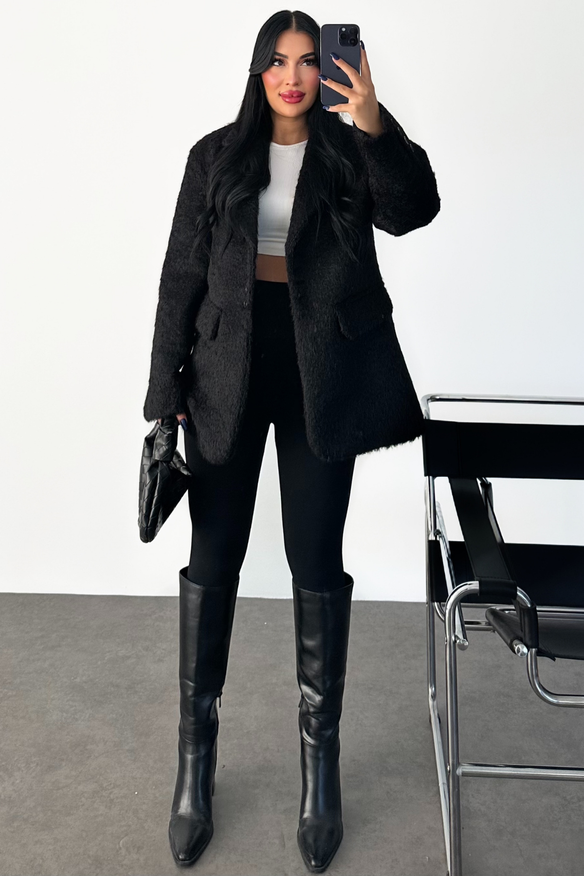PREMİUM SİYAH RENK LESİA YÜN CEKET